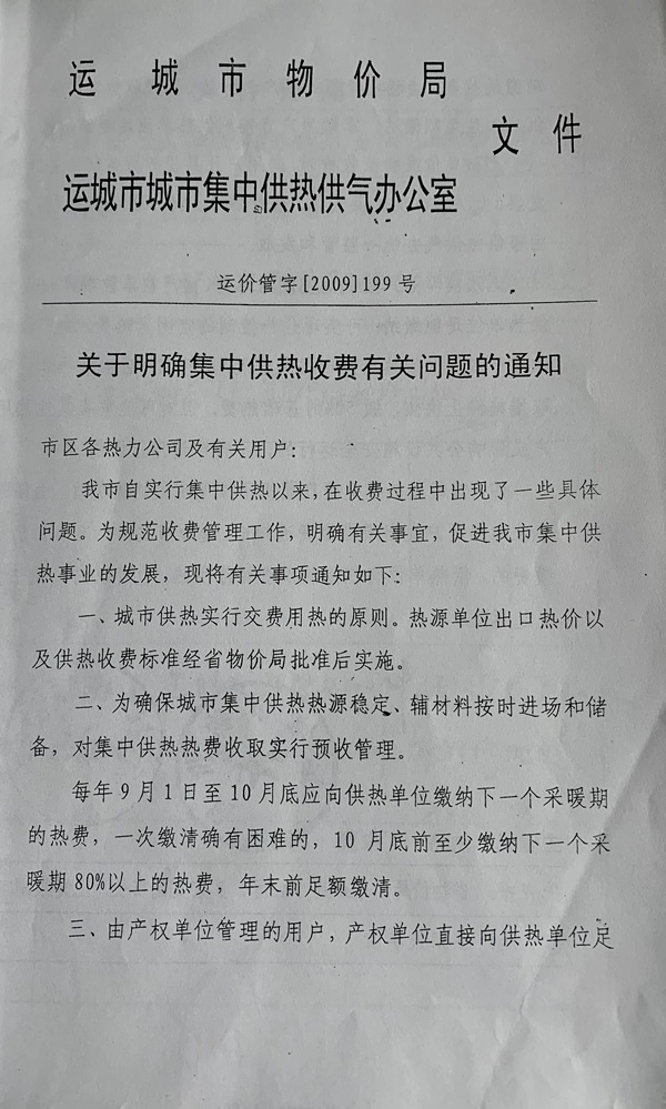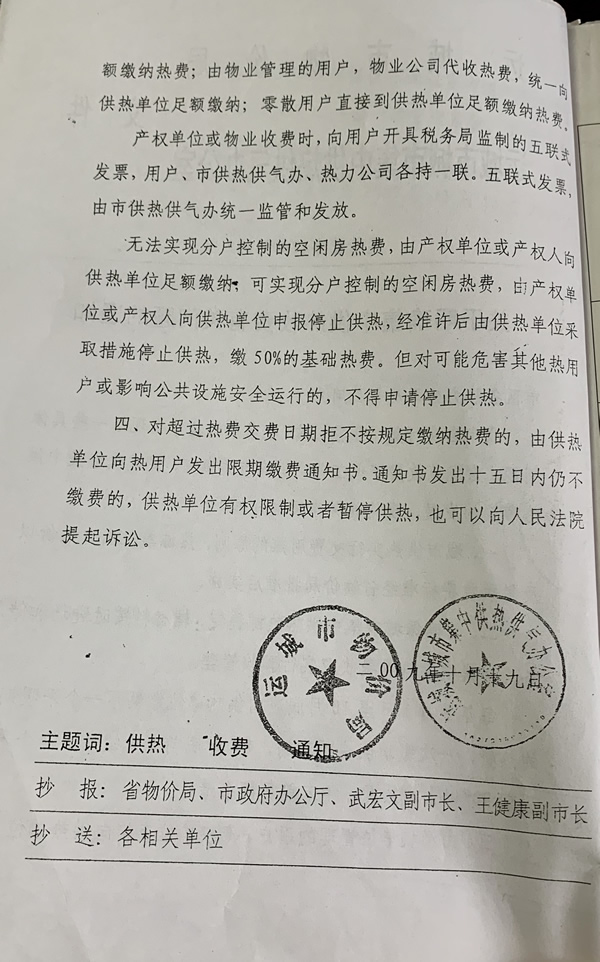 關(guān)于明確集中供熱收費(fèi)有關(guān)問題的通知
